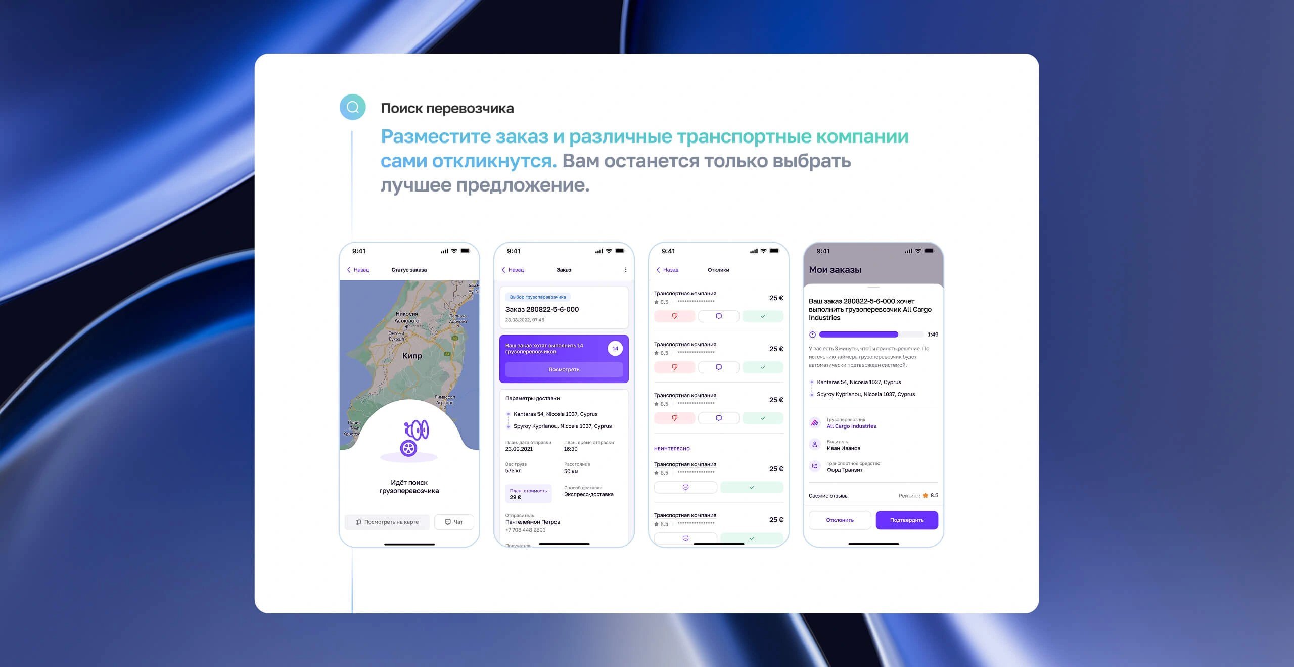 Сервис грузоперевозок на Кипре, «маркетплейс грузоперевозок», который предлагает широкий спектр возможностей для пользователей. С помощью сервиса заказчик может легко и быстро найти подходящего грузоперевозчика, а грузоперевозчик — разместить свою услугу, чтобы привлечь новых клиентов.