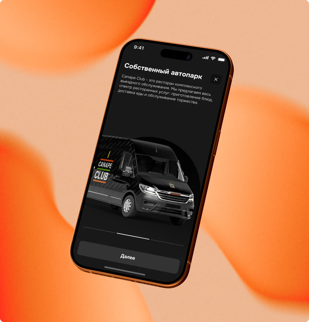 Разработали серию экранов для онбординга, описывающие основные возможности компании.