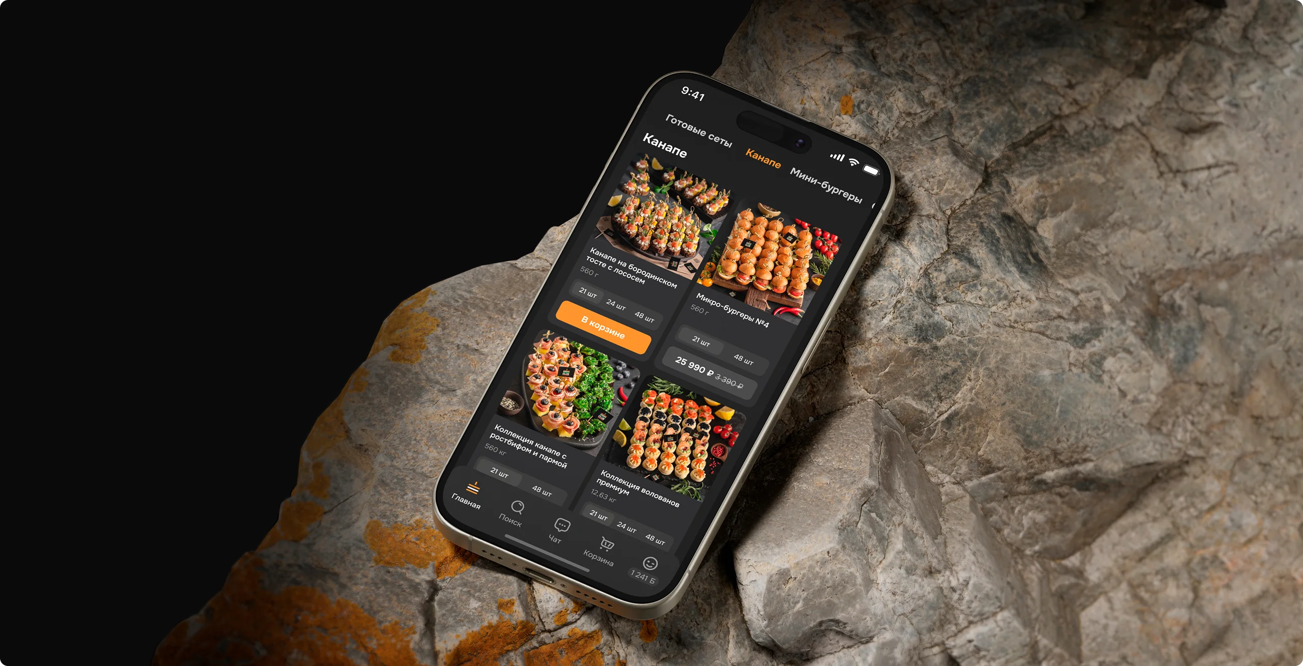 - Разработать приложение для заказов кейтеринга с удобным интерфейсом