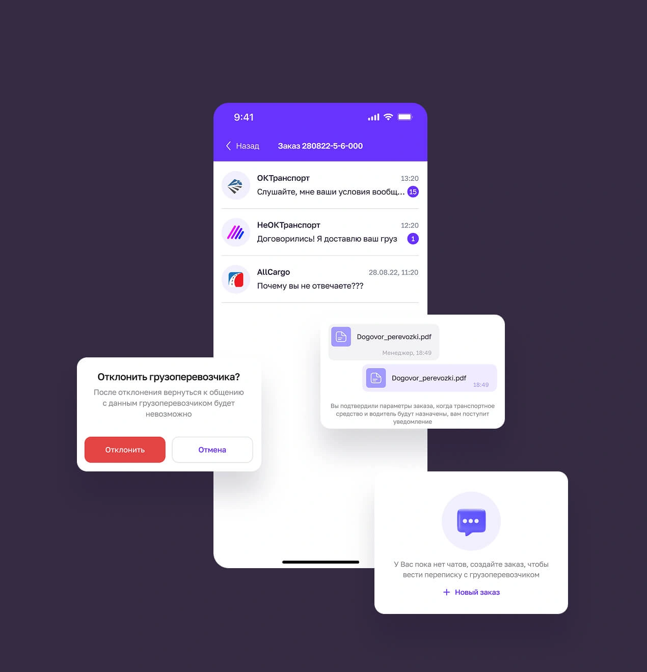 Для каждого заказа предусмотрен индивидуальный чат, где заказчик может уточнить все детали выполнения заказа у грузоперевозчика.
